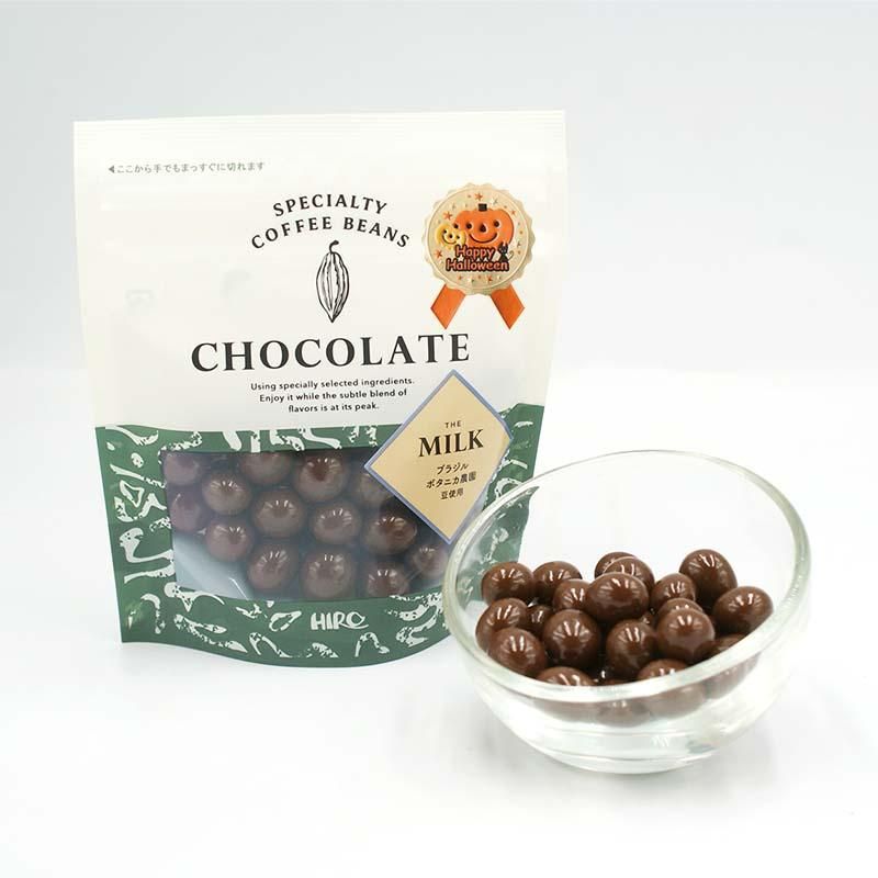 契約農園産コーヒーを独自の焙煎技術で芯を残さずに完全に煎りあげ、豆のままたっぷりのチョコレートでコーティングしました。チョコレートの中から、コーヒー豆が「カリッ」と心地よい音を響かせます。ついつい食べ過ぎてしまうやみつきチョコです。
