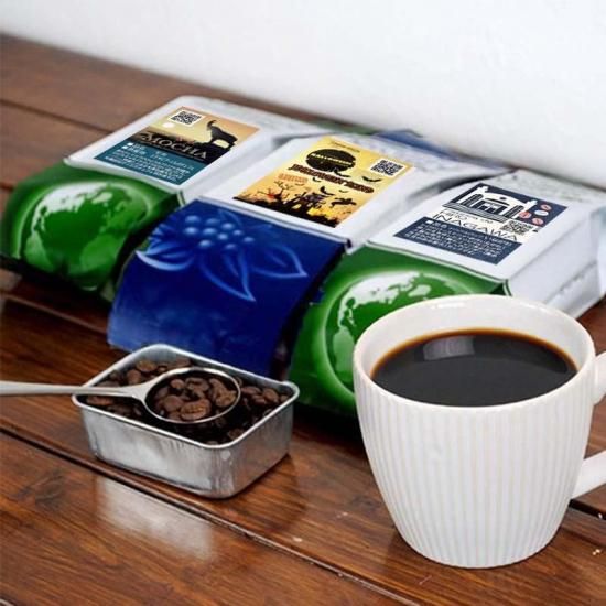 今月は季節限定ハロウィンブレンドと、オーガニック栽培のモカ、定番のオーガニックブレンド いながわをセレクトしました。