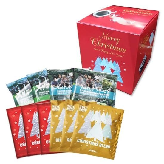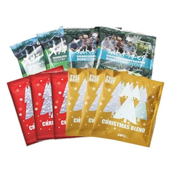 クリスマス限定のブレンドを含むスイーツにピッタリな味わいのドリップコーヒーを、4種類計10個をセットにしてクリスマス限定BOXに入れてお届け!