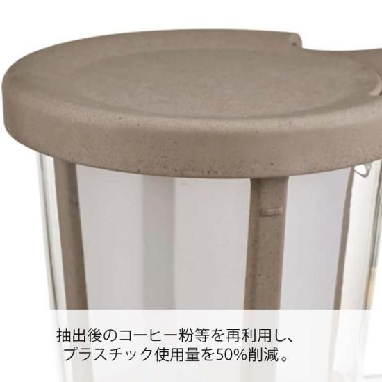 廃棄してしまう抽出後のコーヒー粉や天然系素材を使用し、プラスチックの使用量を約50%削減しました。環境に配慮しながら、ペーパーレスで風味豊かなコーヒーを手軽に味わうことができるアイテムです。