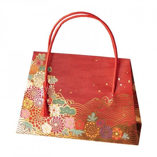 赤地に金の花と青海波が映える華やかな和風紙袋なので、帰省や年末年始のご挨拶にピッタリなお年賀限定ギフトです。