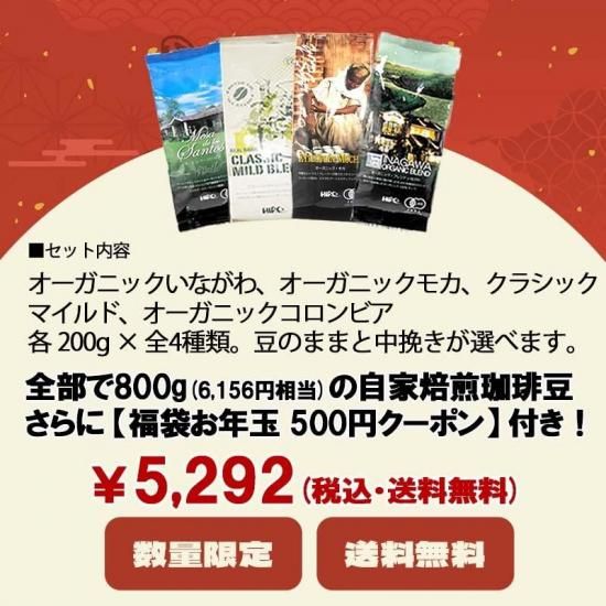 各200g ×4種類= 800g(約80杯分)