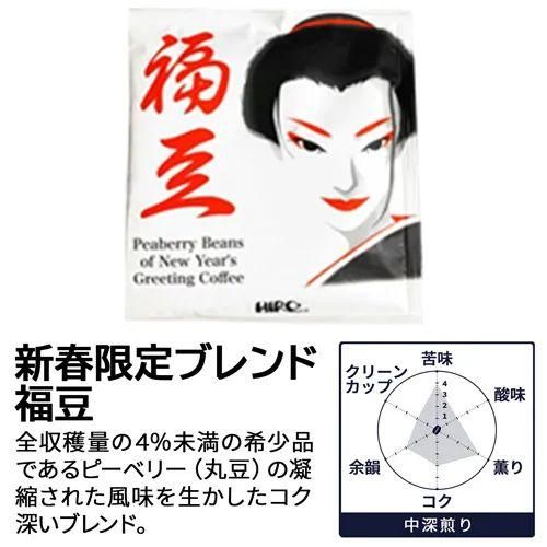 チョコレートとマンデリンのアーシーさが混じる風味が特徴の新春限定ブレンド「福豆」をはじめ、ヒロコーヒーの定番ドリップコーヒーを詰め合わせたボリュームセット。